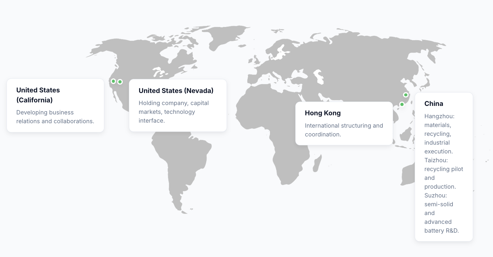Zhejiang Lingyi New Energy Technology Co., Ltd. (Hangzhou) leads materials, recycling, and industrial execution; Taizhou hosts recycling pilot and production.